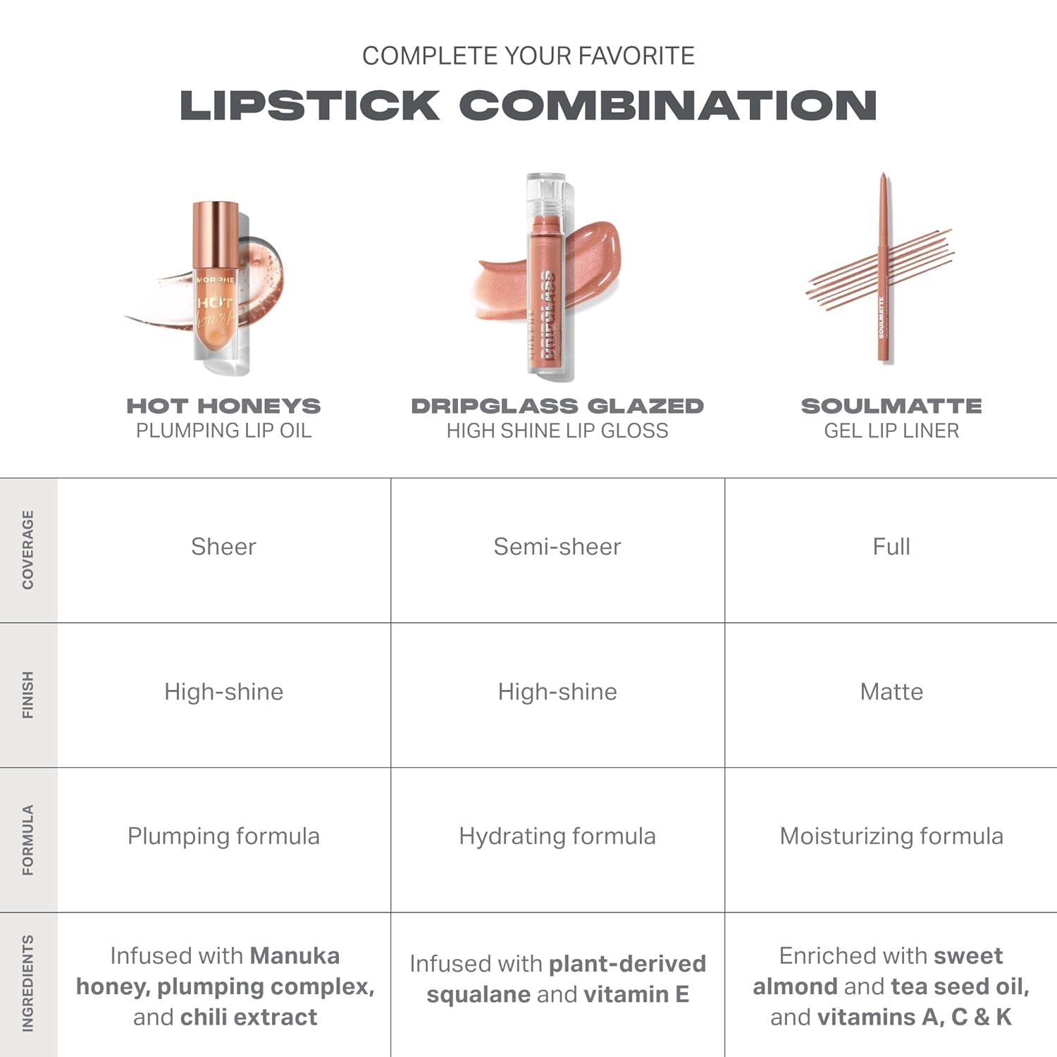 Glossy with a Twist – This high-shine tinted lip oil for women blends moisture-rich Manuka honey, a powerful plumping complex, and chili extract to visibly enhance volume with a warm, tingling finish.