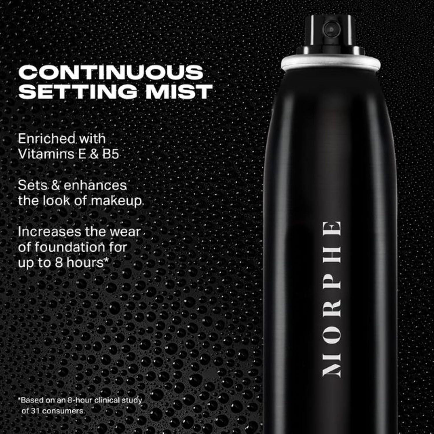 Achieve a flawless, long-lasting look with this powerhouse setting duo. The Morphe Continuous Setting Spray delivers a micro-fine mist that locks in makeup, preventing caking and fading while extending foundation wear. Paired with the Morphe Continuous Prep & Set Face Mist, this hydrating formula, enriched with ceramides and antioxidants, preps, refreshes, and nourishes the skin for a radiant finish. Whether you're setting your makeup or boosting hydration throughout the day, this duo ensures a smooth, weightless application with an even, air-powered mist. Stay fresh, stay flawless—unleash your artistry with Morphe.